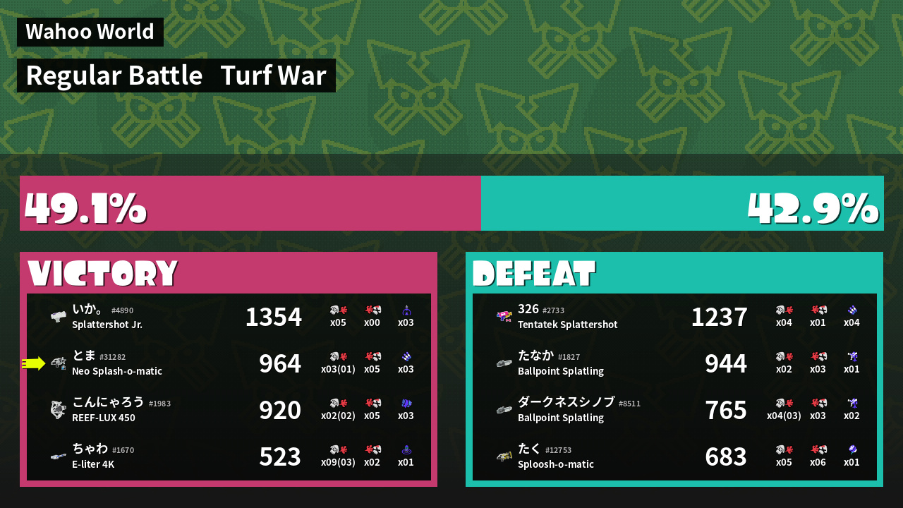 | Mode | Turf War - Regular Battle | ||