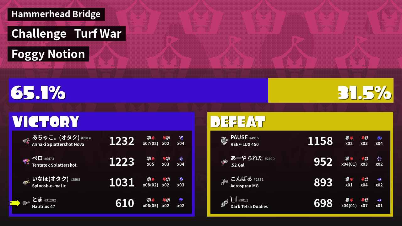 | Mode | Turf War - Challenge | ||