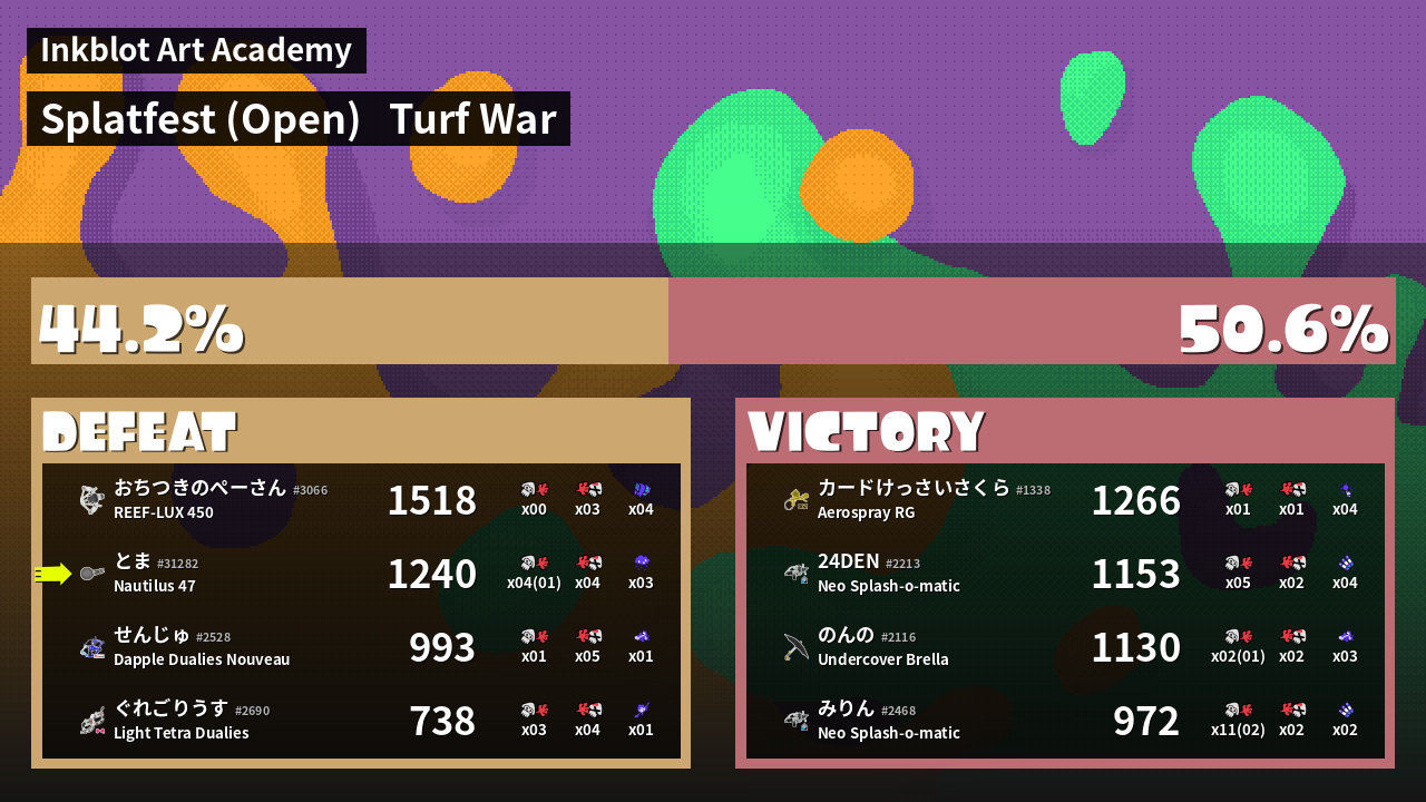 | Medals | #1 Overall Splatter #1 Popular Target #1 Super Jump Spot | ||