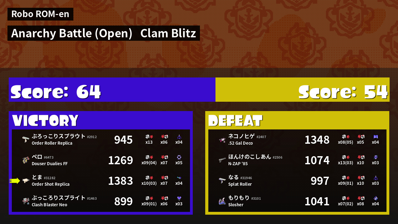 | Mode | Clam Blitz - Anarchy Battle (Open) | ||