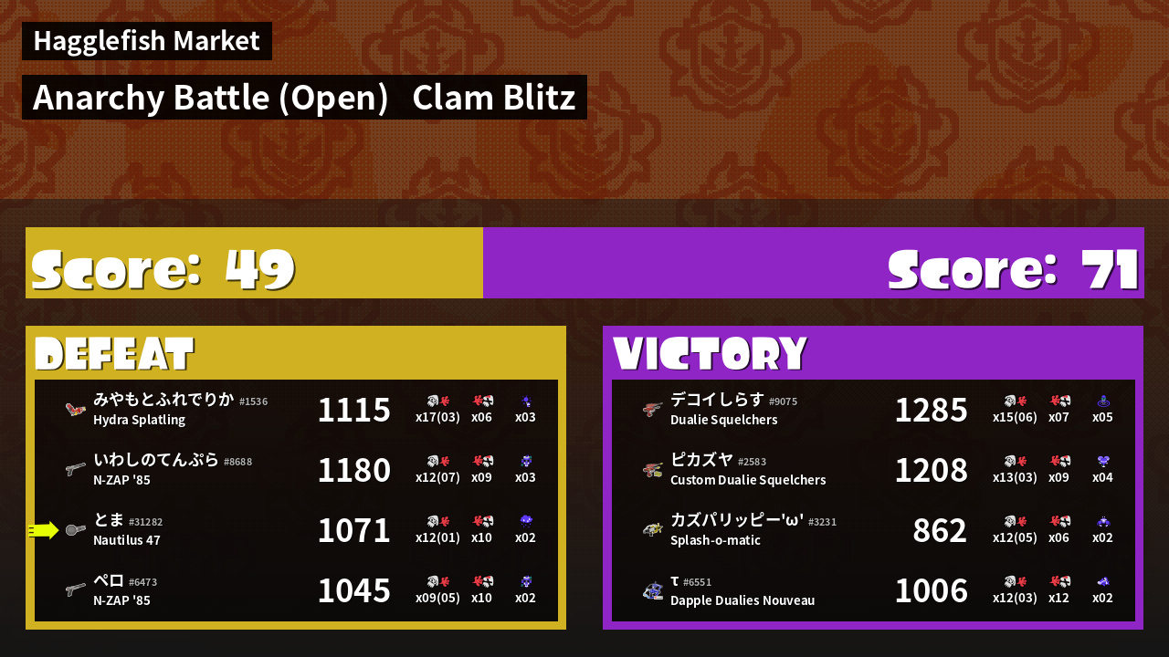 | Mode | Clam Blitz - Anarchy Battle (Open) | ||