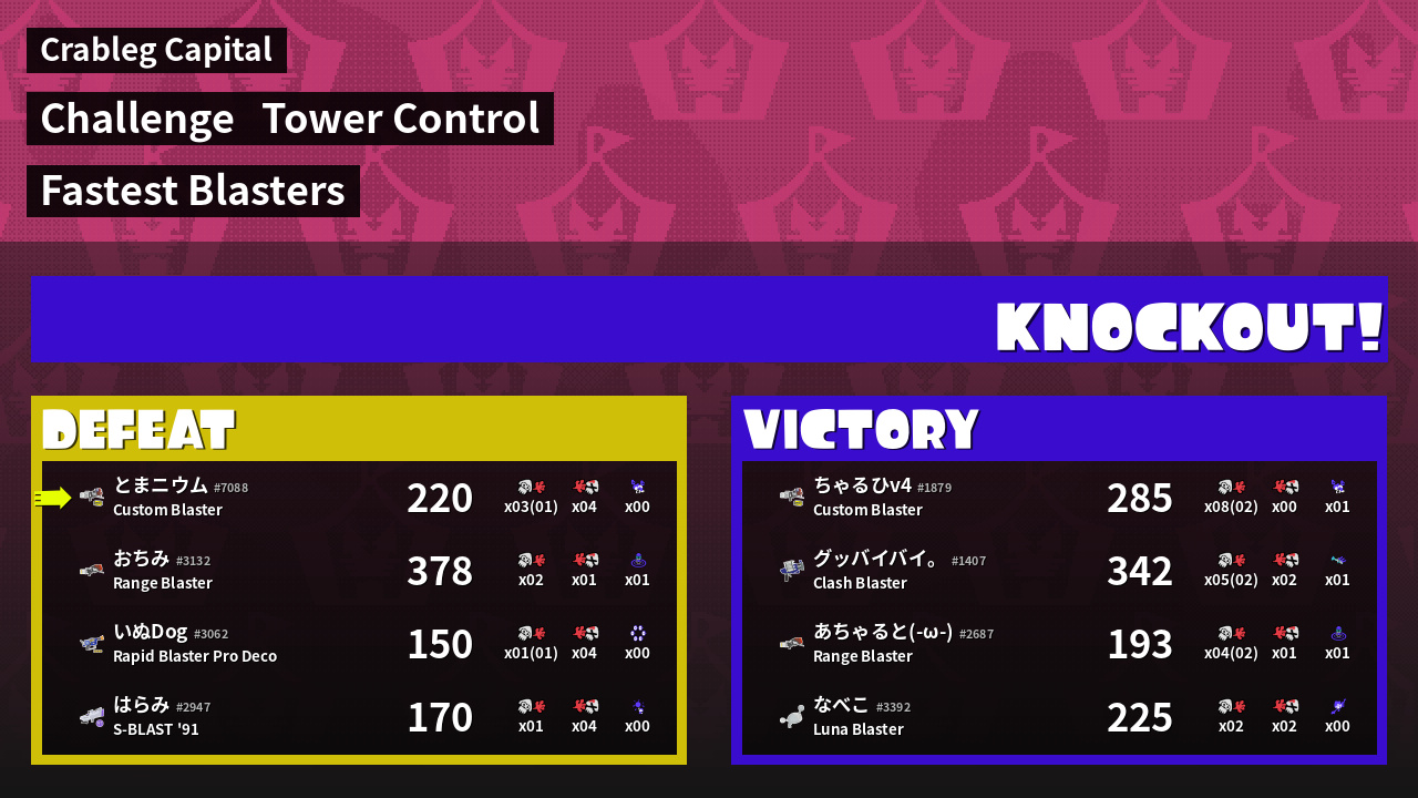 | Medals | #1 Overall Splatter #1 Enemy Splatter #1 Splat Assister | ||
