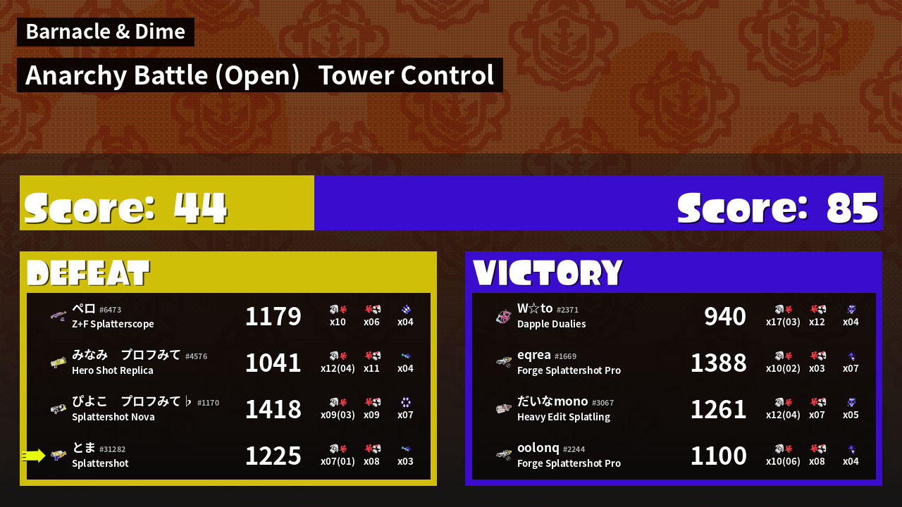 | Mode | Tower Control - Anarchy Battle (Open) | ||