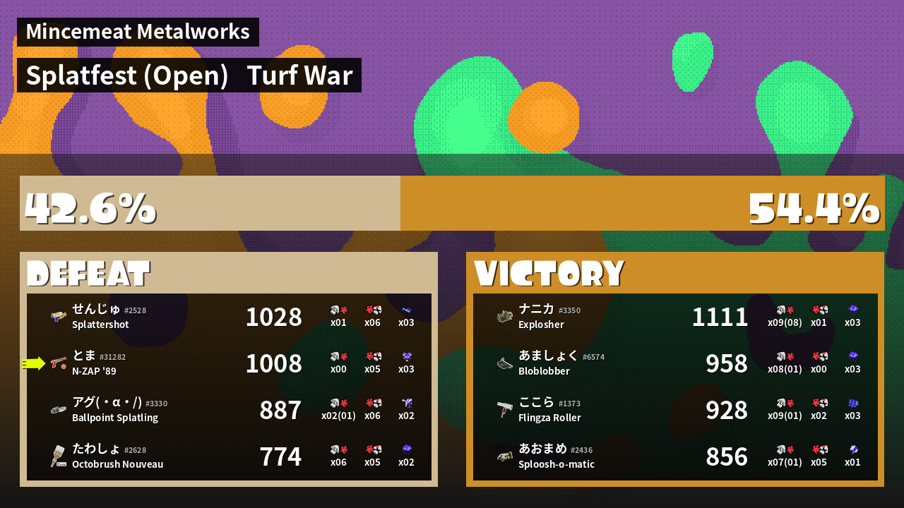 | Well-Behaved Predator  せんじゅ #2528 |  Splattershot                    | 1,028 | 1 + 0 | 6 | 0.17 |  3 | |