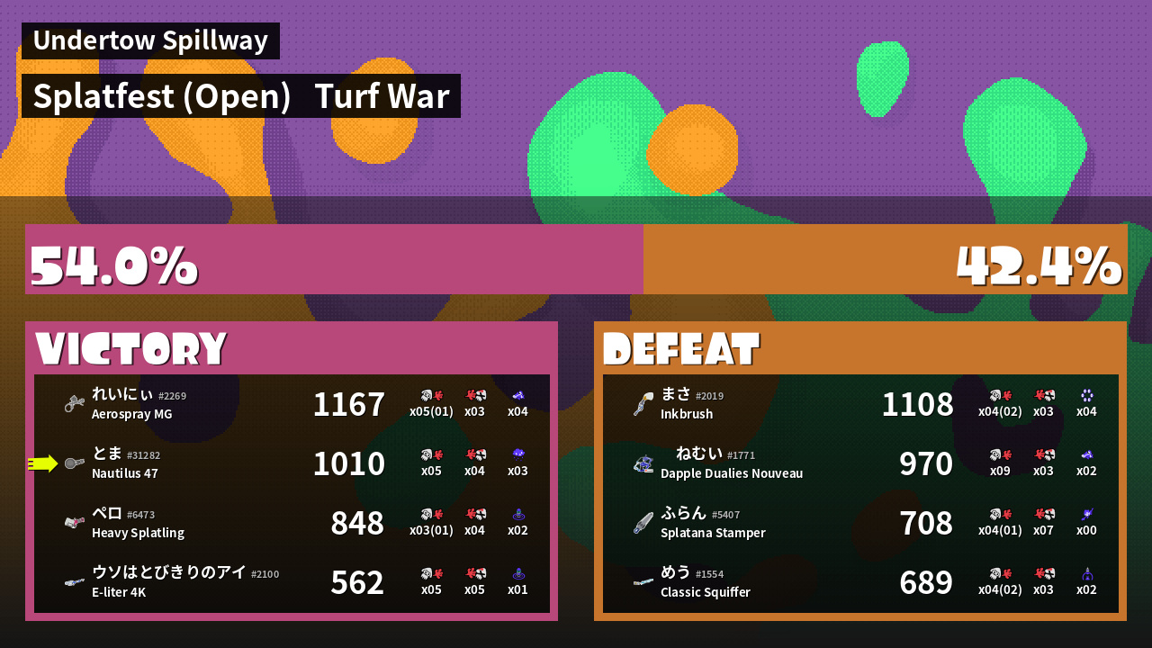 | Medals | #1 Overall Splatter #1 Home-Base Inker #1 Enemy-Base Inker | ||