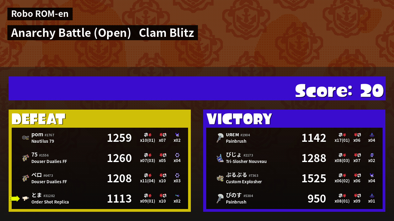 | Mode | Clam Blitz - Anarchy Battle (Open) | ||