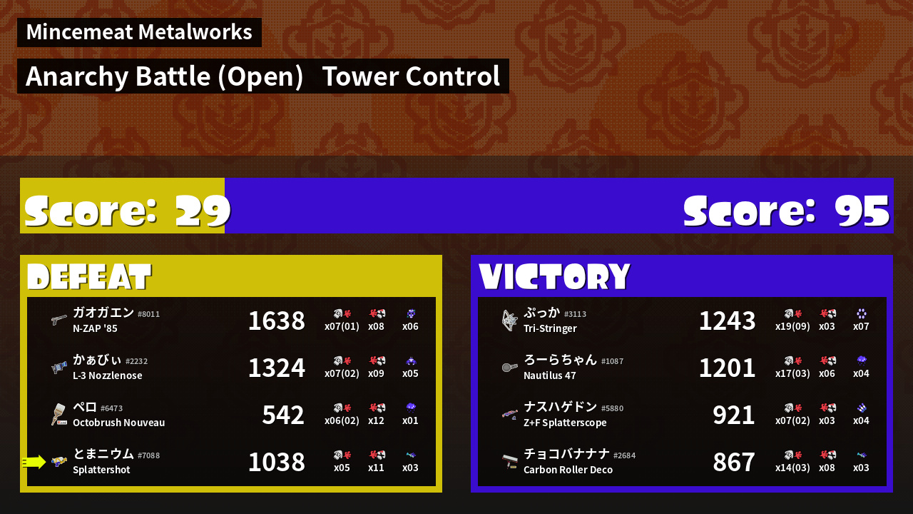 | Mode | Tower Control - Anarchy Battle (Open) | ||