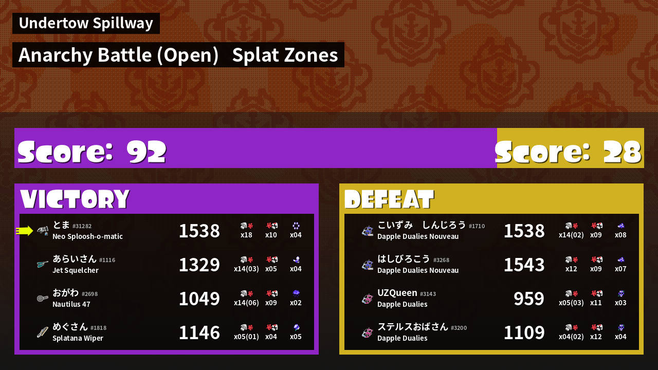 | Mode |  Splat Zones -  Anarchy Battle (Open) | ||