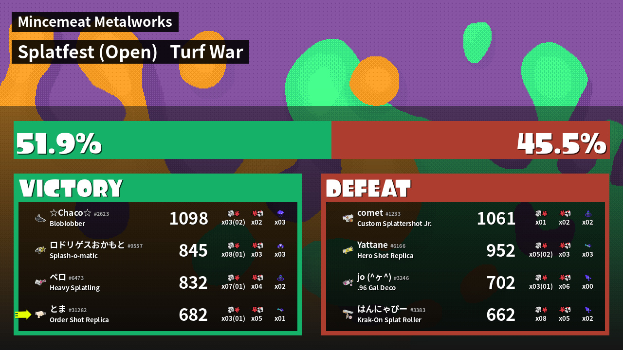 | Mode | Turf War - Splatfest (Open) | ||