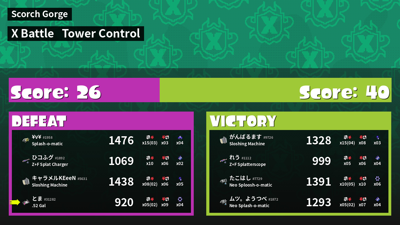 | Mode | Tower Control - X Battle | ||
