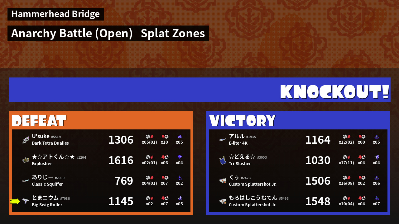 | Mode | Splat Zones - Anarchy Battle (Open) | ||