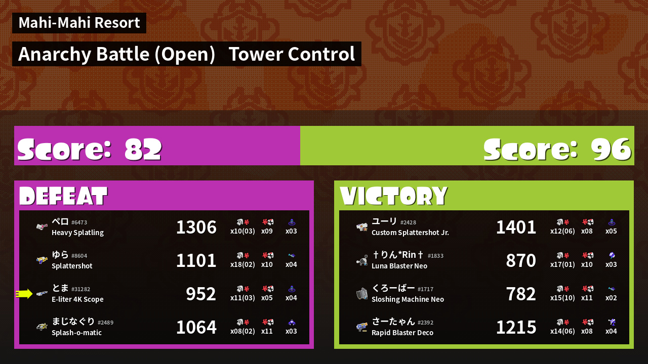| Mode | Tower Control - Anarchy Battle (Open) | ||