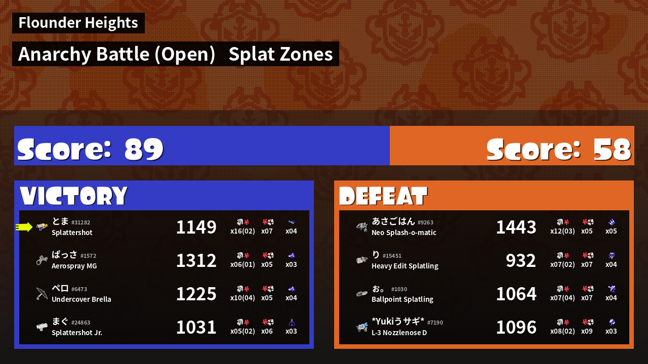 | Mode | Splat Zones - Anarchy Battle (Open) | ||