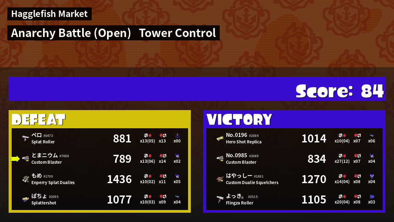 | Mode | Tower Control - Anarchy Battle (Open) | ||