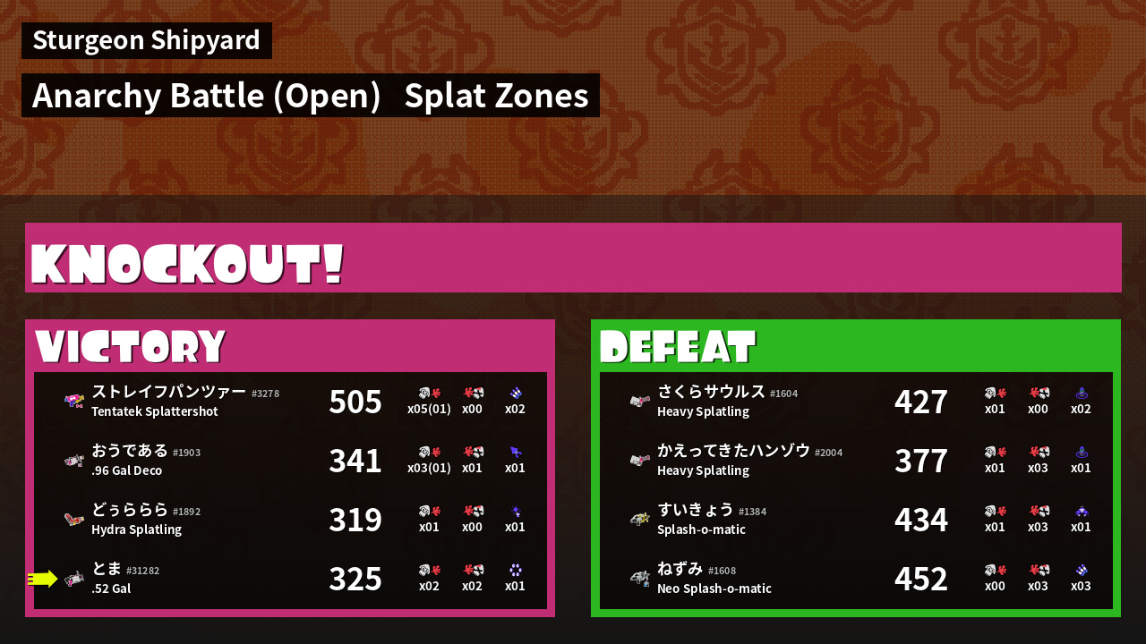 | Mode | Splat Zones - Anarchy Battle (Open) | ||