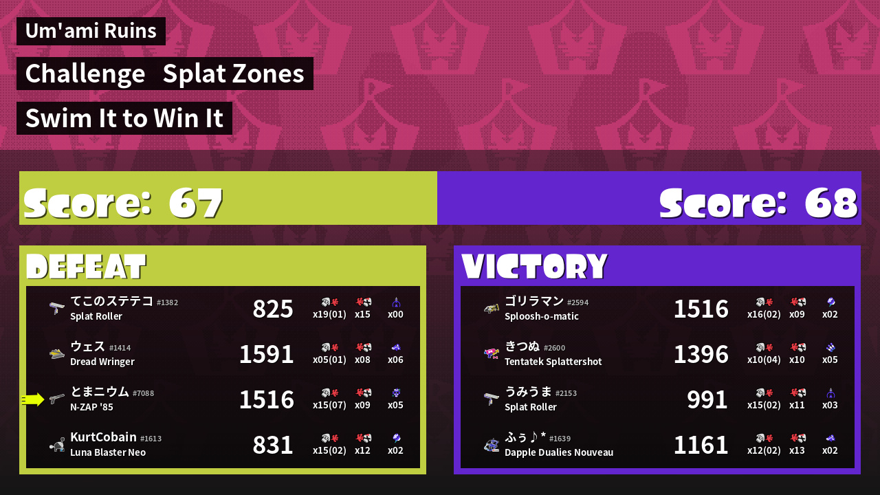 | Mode | Splat Zones - Challenge | ||