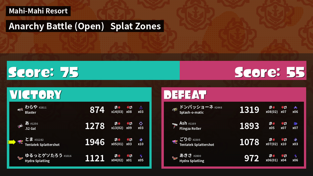 | Mode | Splat Zones - Anarchy Battle (Open) | ||