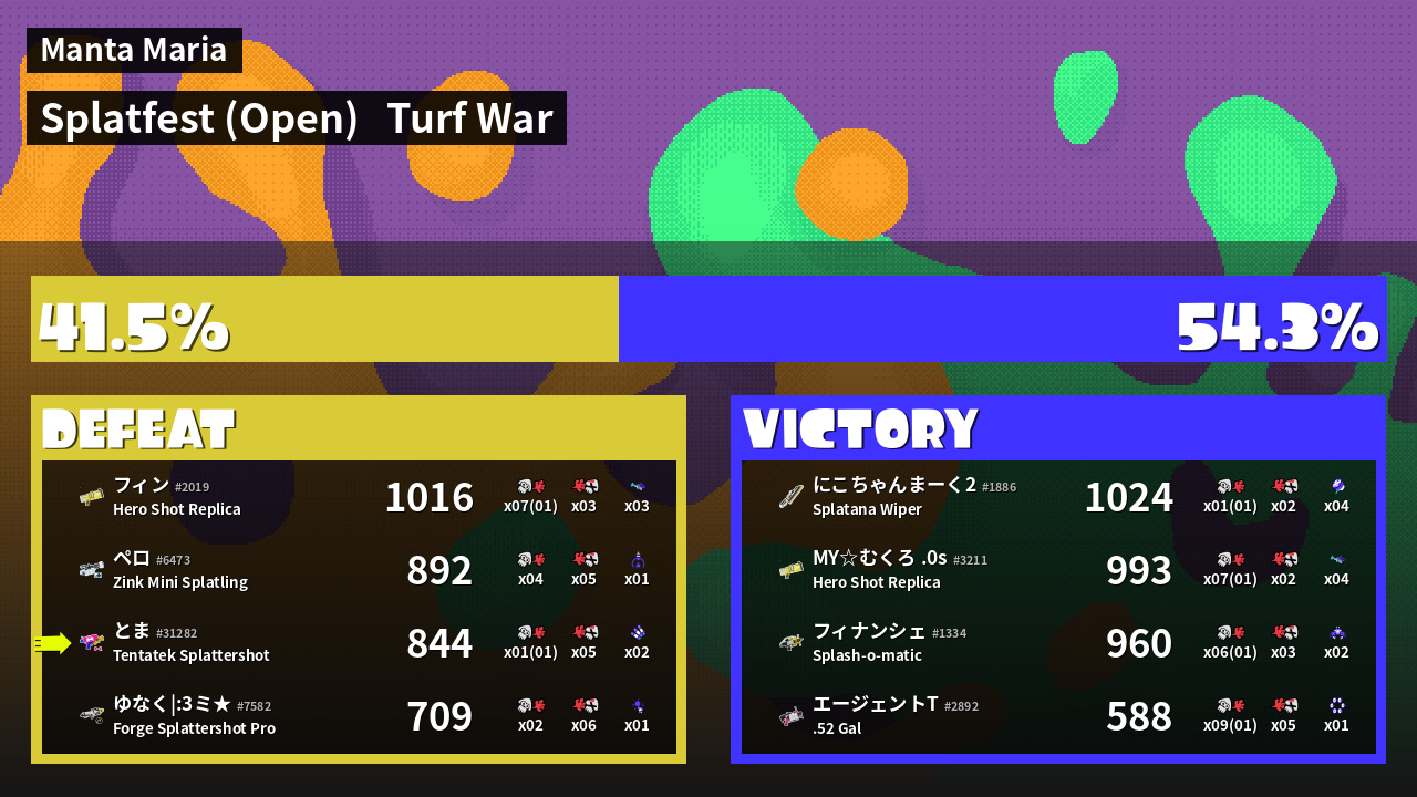 | Medals | #1 Super Jump Spot #1 Splat Assister #2 Home-Base Inker | ||