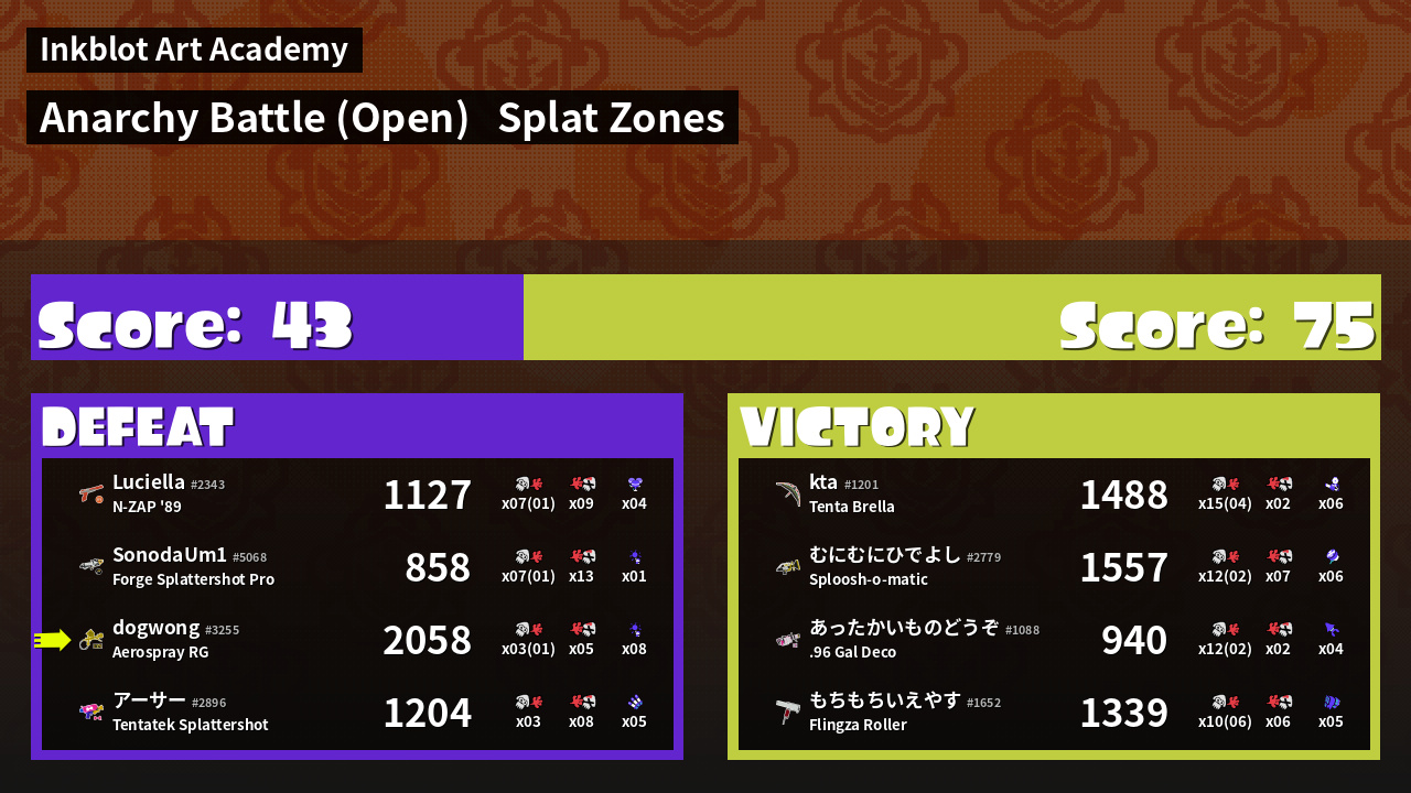 | Mode | Splat Zones - Anarchy Battle (Open) | ||
