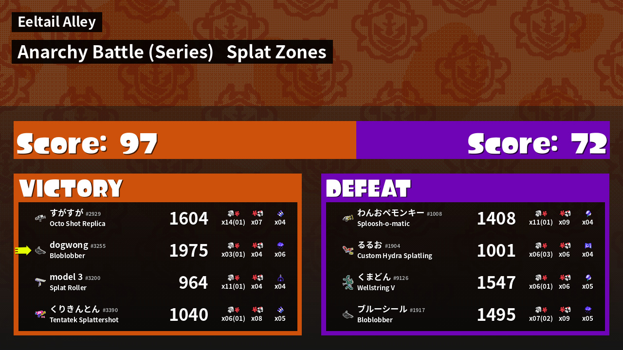 | Mode | Splat Zones - Anarchy Battle (Series) | ||