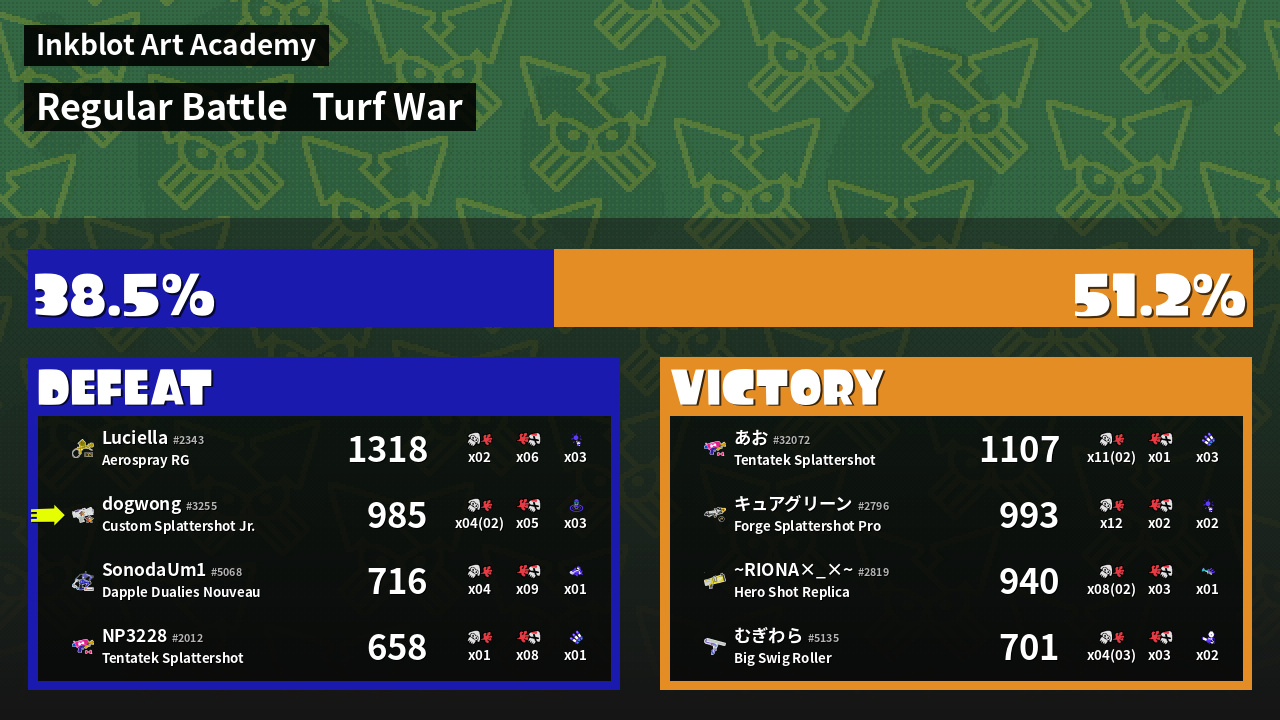 Results of dogwong's Battle