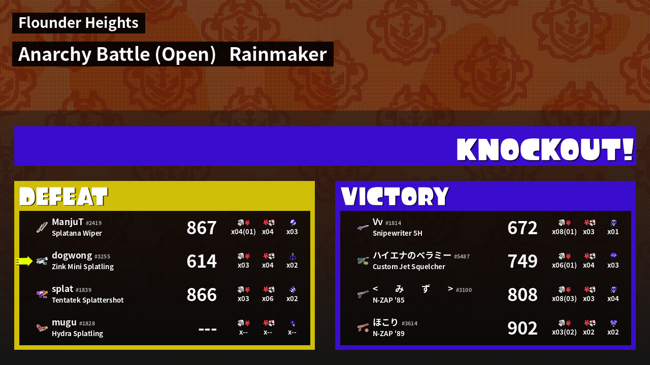 | Mode | Rainmaker - Anarchy Battle (Open) | ||