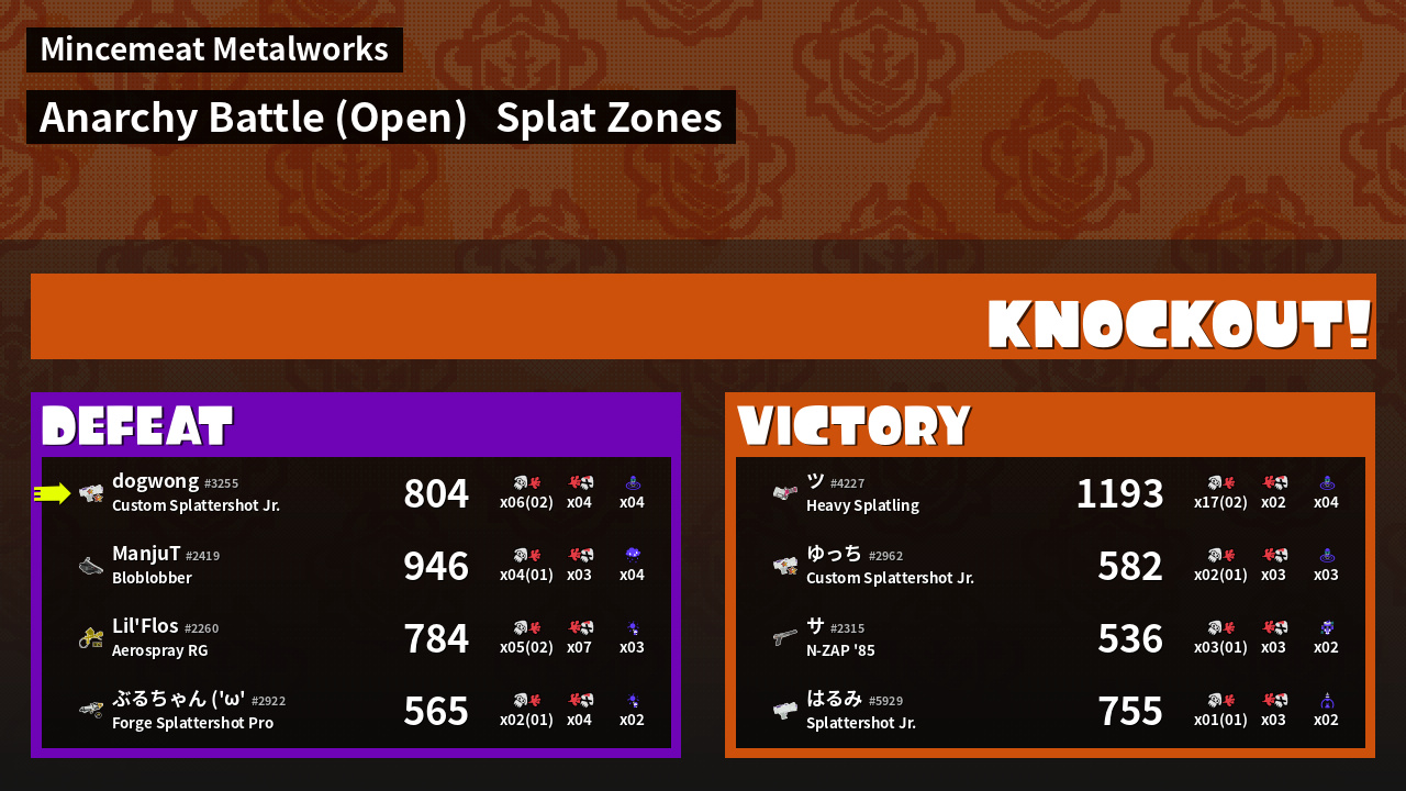 | Mode | Splat Zones - Anarchy Battle (Open) | ||