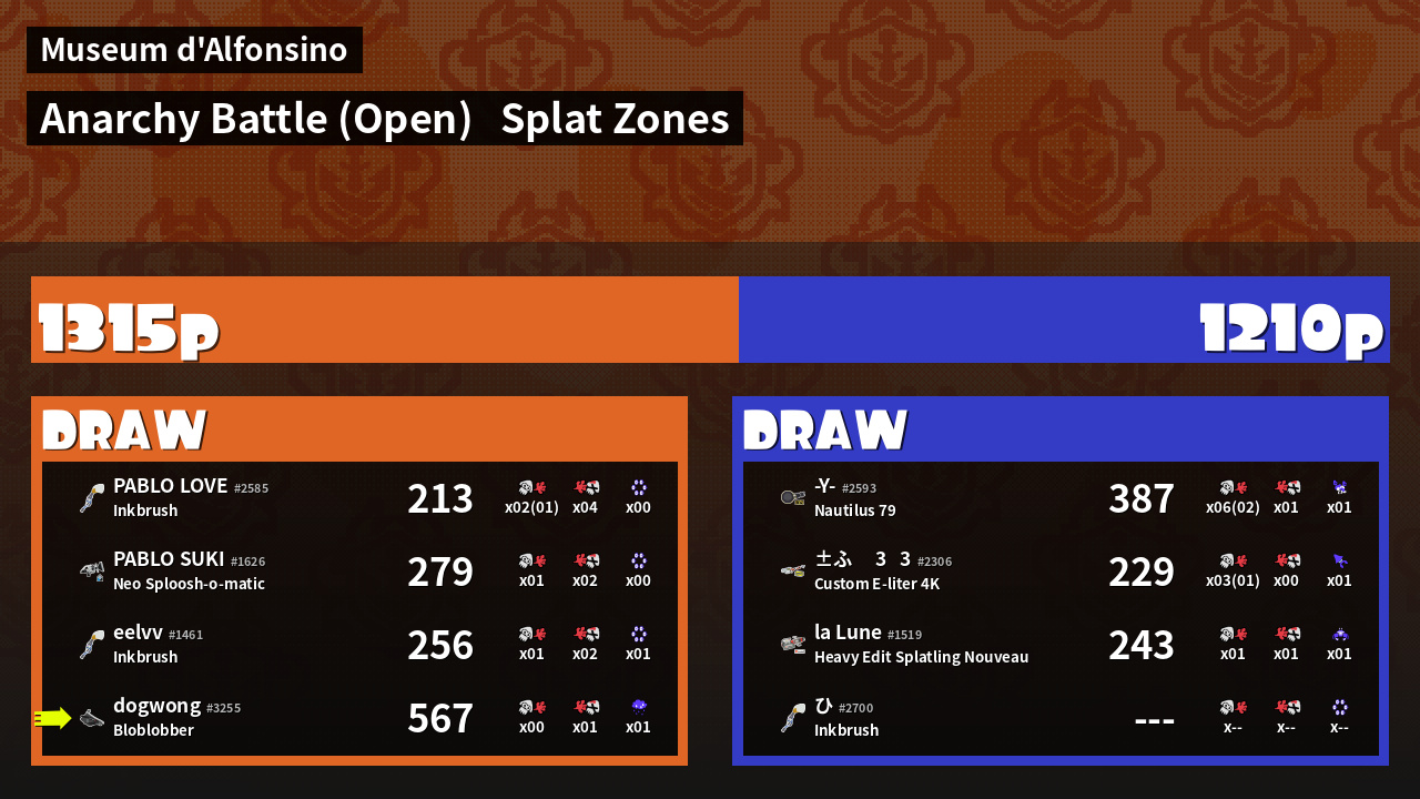 Name | Weapon | Inked | ![]() |