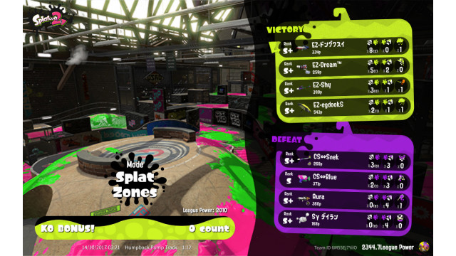 | Mode | Splat Zones - League Battle (Quad) |