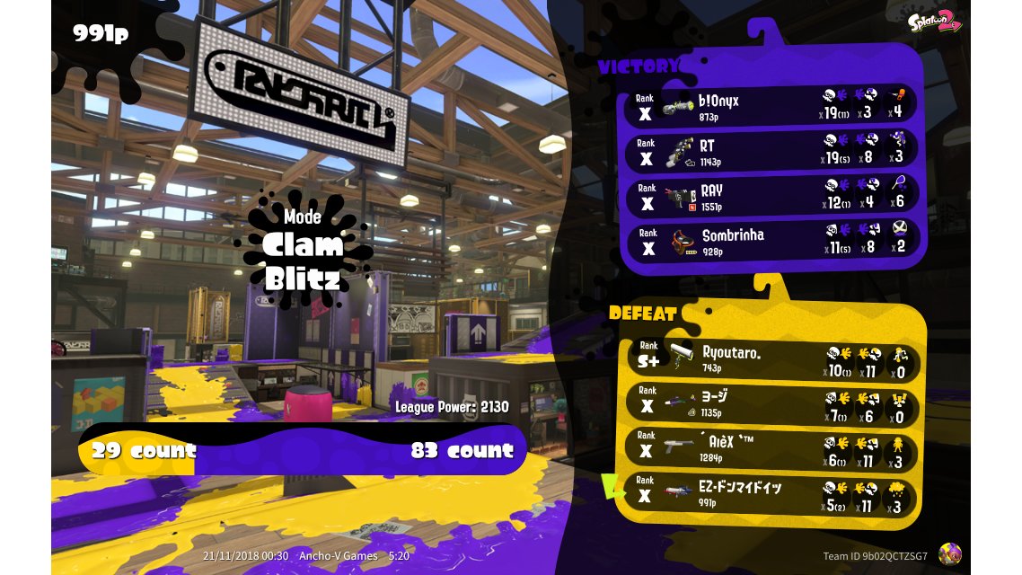 | Mode | Clam Blitz - League Battle (Quad) | ||||||||||||||||||||||