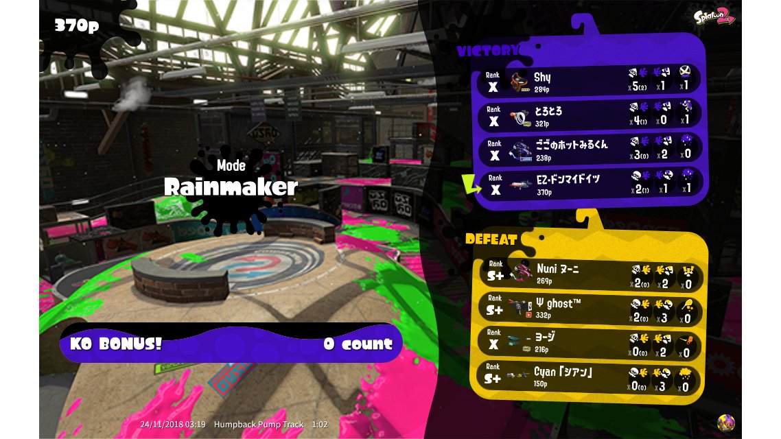 | Weapon | Splattershot Pro ( Point Sensor, Ink Storm) | ||||||||||||||||||||||