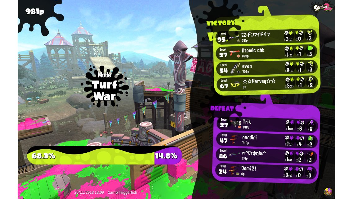 | Mode | Turf War - Regular Battle | |||||||||||||||||||||||||||||||||||||