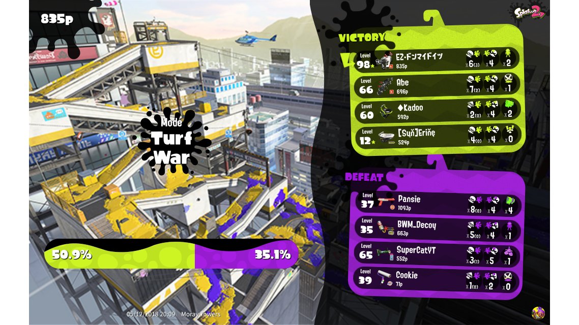 | Mode | Turf War - Regular Battle | ||||||||||||||||
