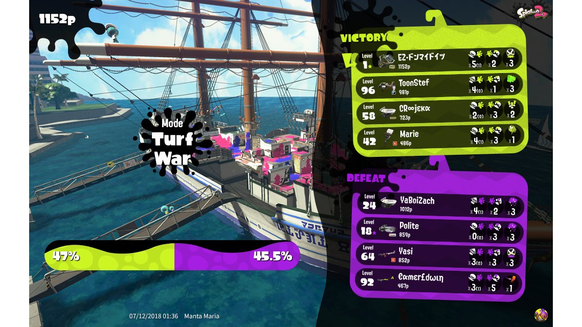 | Mode | Turf War - Regular Battle | ||||||||||||||||