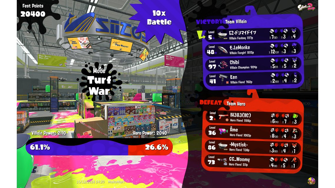 | Mode | Turf War - Splatfest (Pro) | ||||||||||||||||