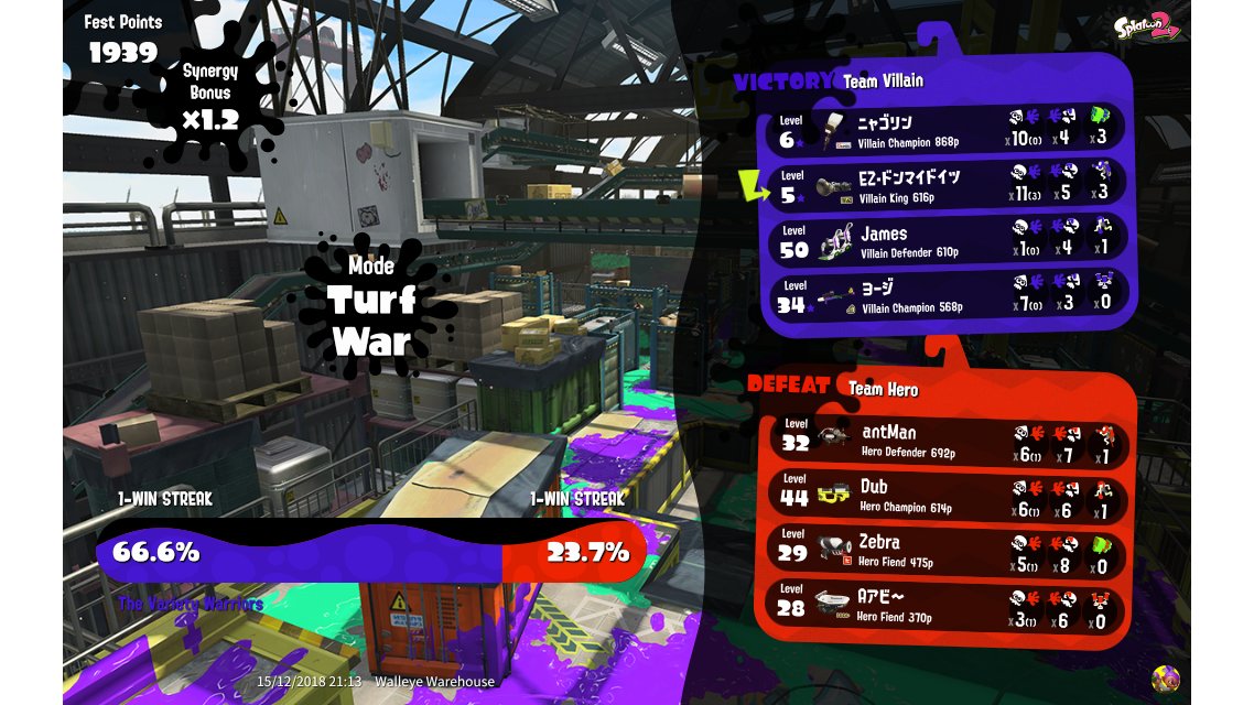 | Mode | Turf War - Splatfest (Team) | |||||||||||||||||||||||||||||||