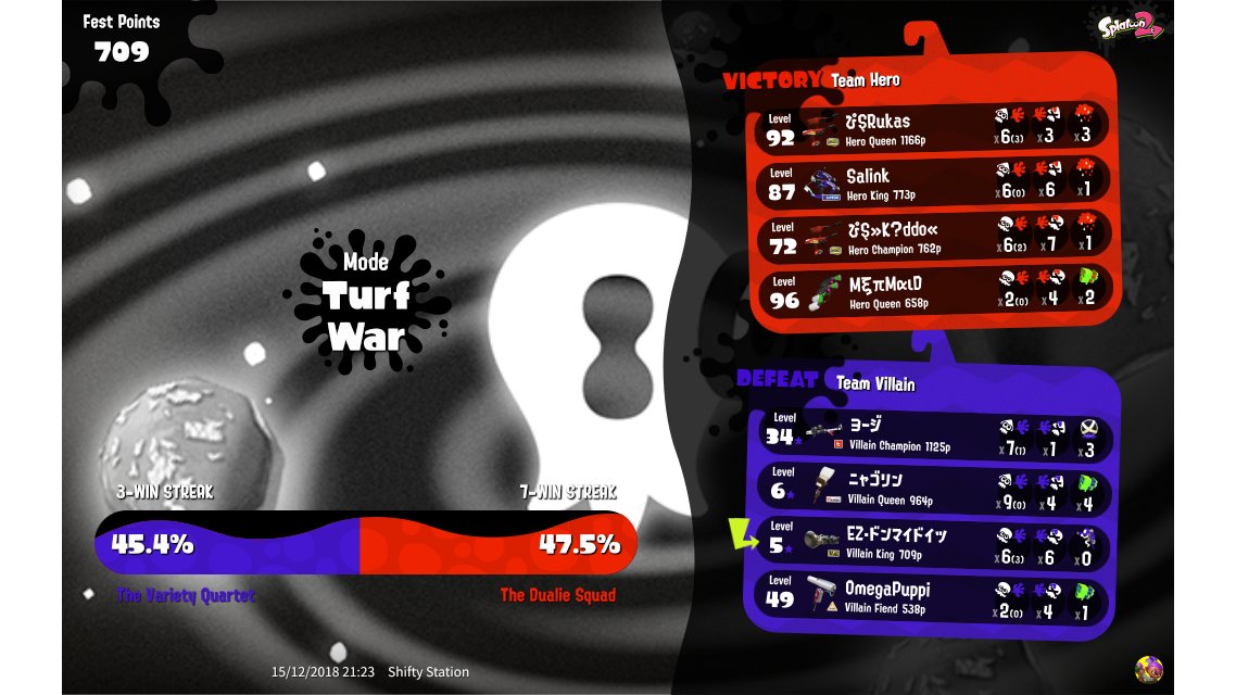 | Mode | Turf War - Splatfest (Team) | |||||||||||||||||||||||||||||||