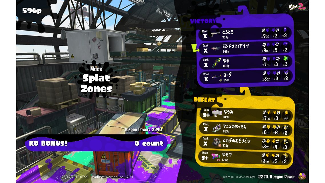 | Mode | Splat Zones - League Battle (Quad) | ||||||||||||||||||||||