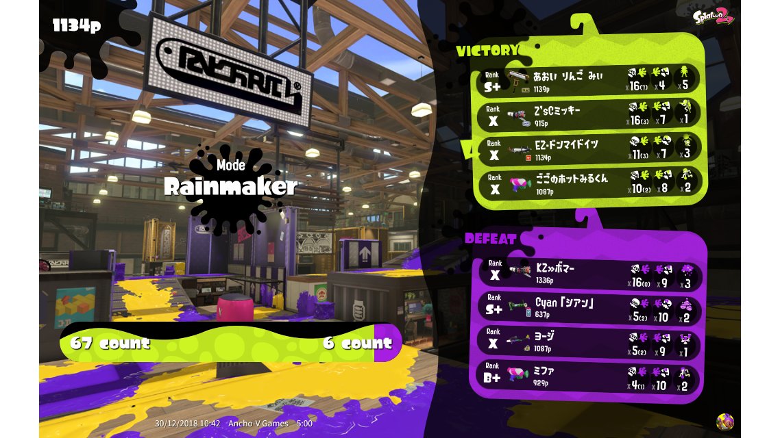 | SplatNet Battle # | 18,016 | ||||||||||||||||||||||