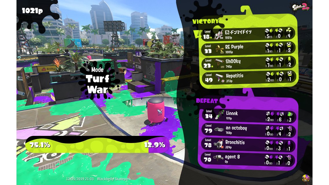 | Mode | Turf War - Regular Battle | |||||||||||||||||||||||||||||||||||||