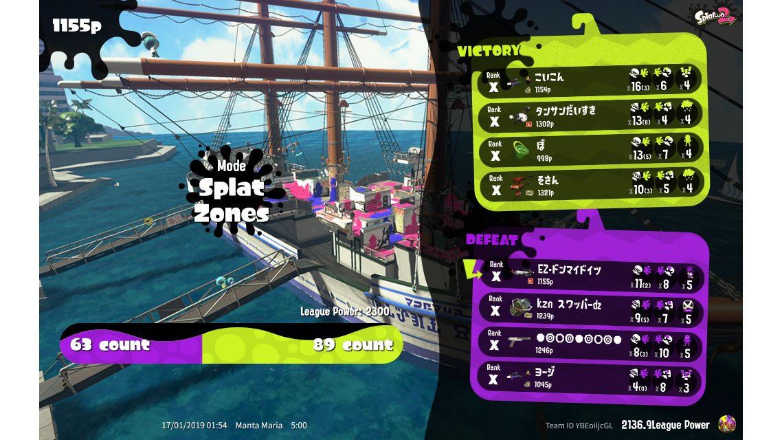 | Mode | Splat Zones - League Battle (Quad) | ||||||||||||||||||||||