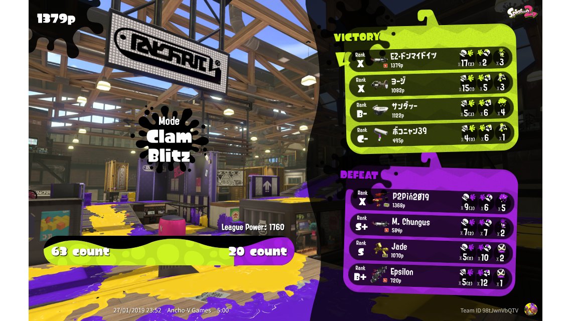 | Mode | Clam Blitz - League Battle (Quad) | |||||||||||||||||||||||||||||||||||||||||||