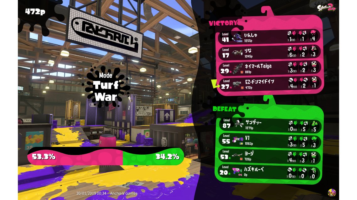 | SplatNet Battle # | 19,134 | ||||||||||||||||||||||||||||||||||