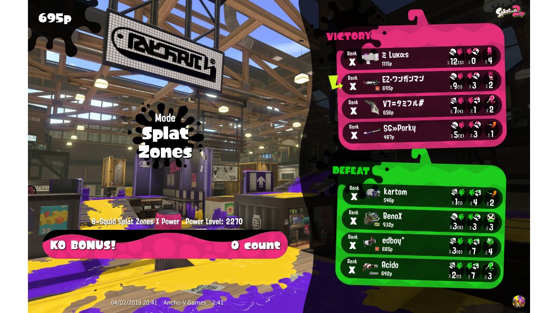 | Mode | Splat Zones - Ranked Battle | |||||||||||||||||||||||||