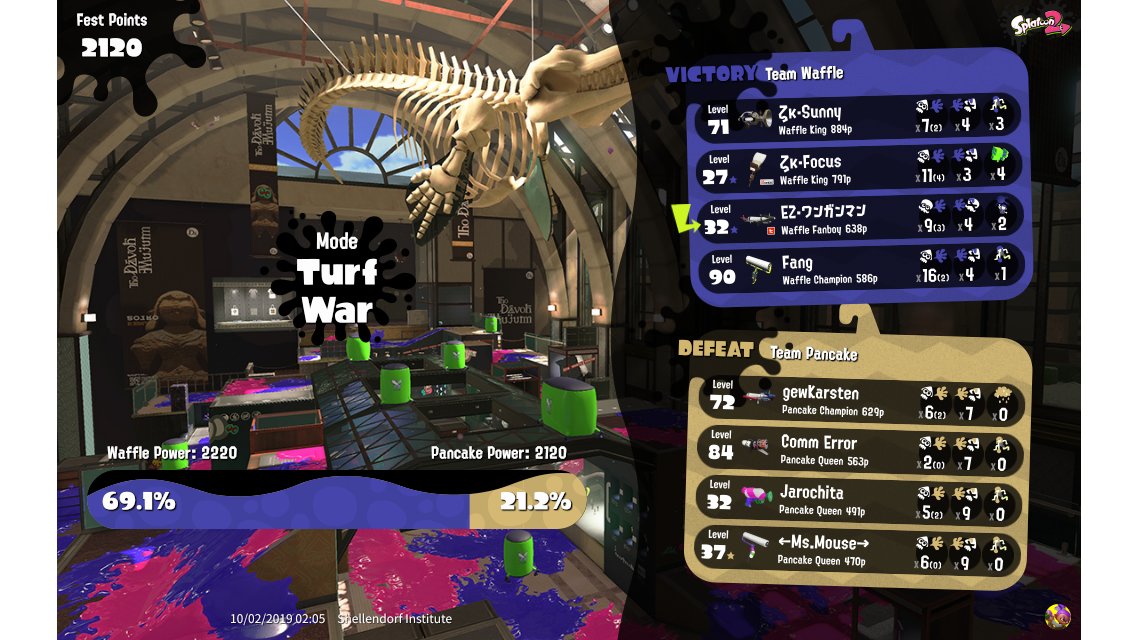 | Mode | Turf War - Splatfest (Pro) | |||||||||||||||||||||||||||||||