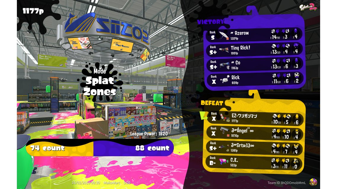 | Mode | Splat Zones - League Battle (Twin) | |||||||||||||||||||||||||||||||||||||