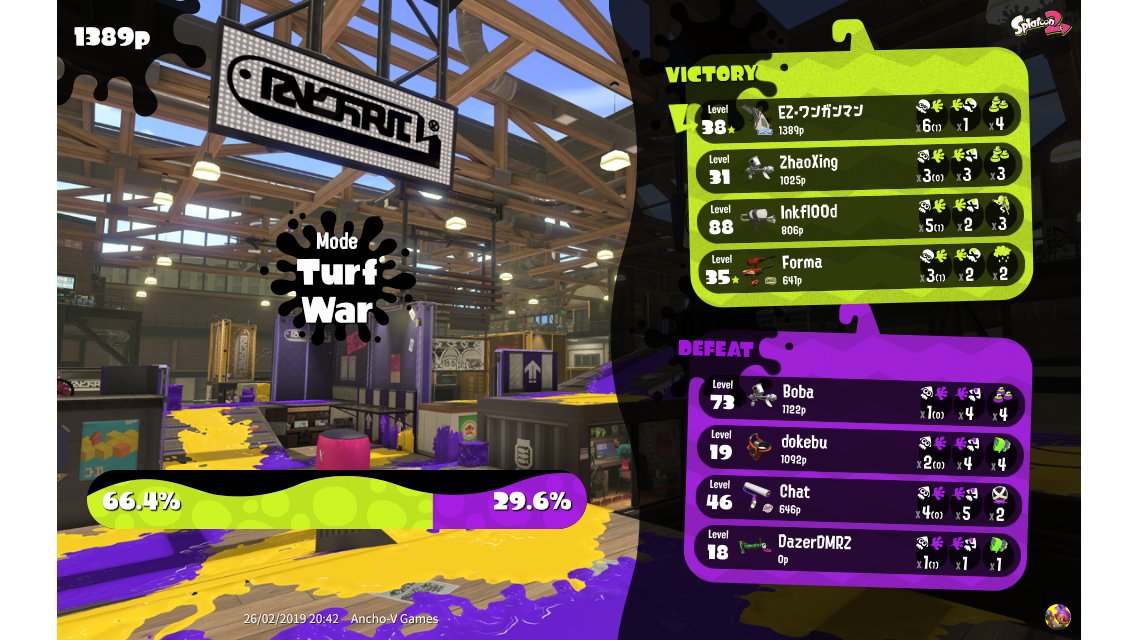 | Mode | Turf War - Regular Battle | ||||||||||||||||
