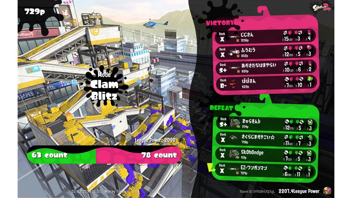 | Mode | Clam Blitz - League Battle (Twin) | ||||||||||||||||