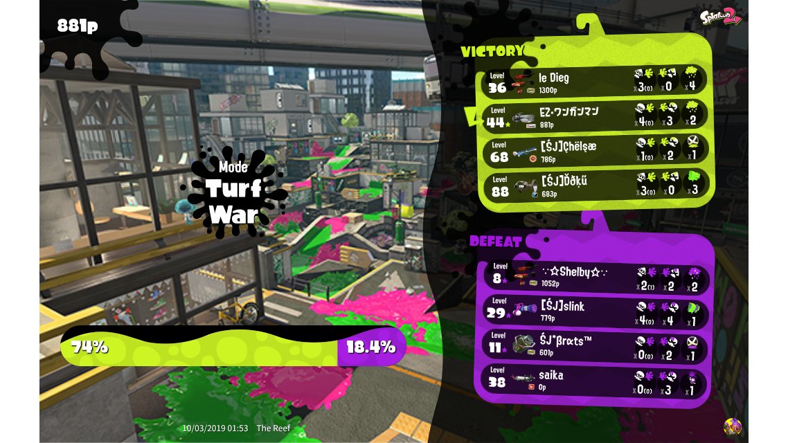 | Mode | Turf War - Regular Battle | ||||||||||||||||||||||||||||||||||||||||