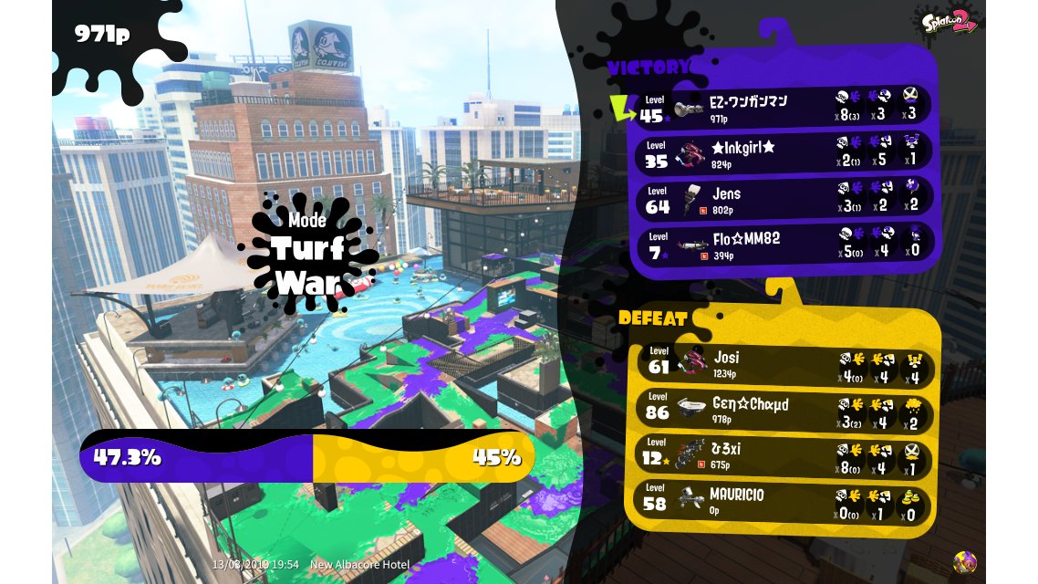 | Mode | Turf War - Regular Battle | |||||||||||||||||||||||||||||||||||||